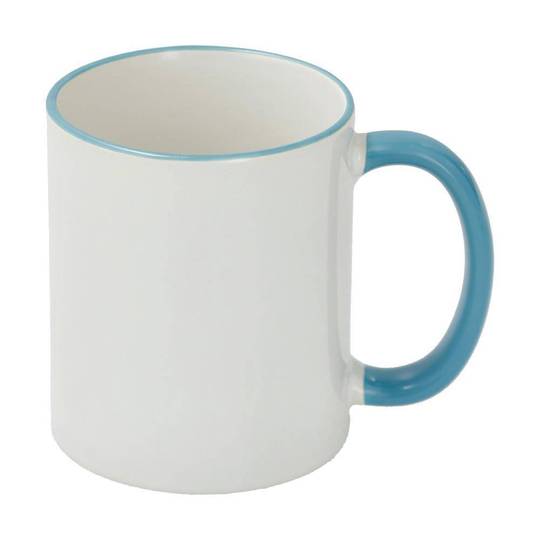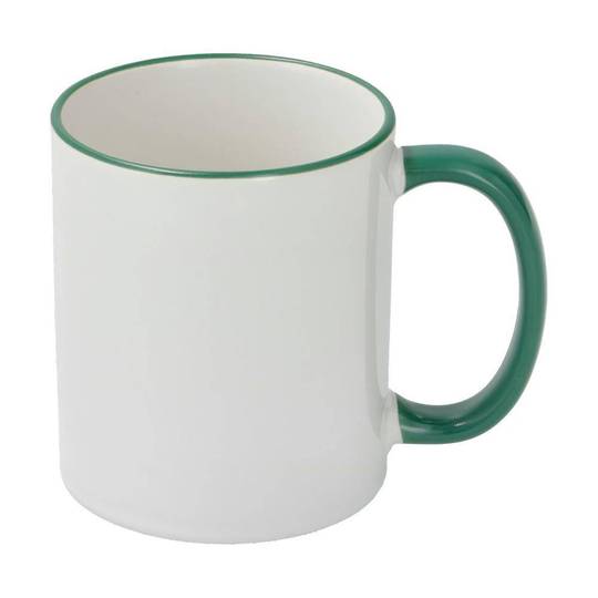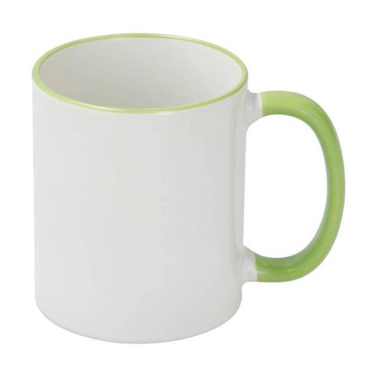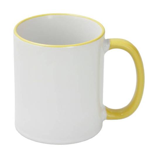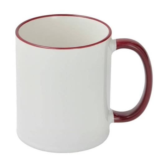 Krus med farvet kant og hank som kommer i mange forskellige farver.