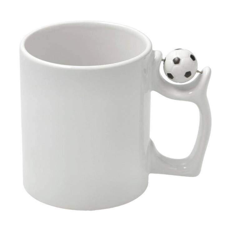 Krus i hvid keramik med fodboldhank.